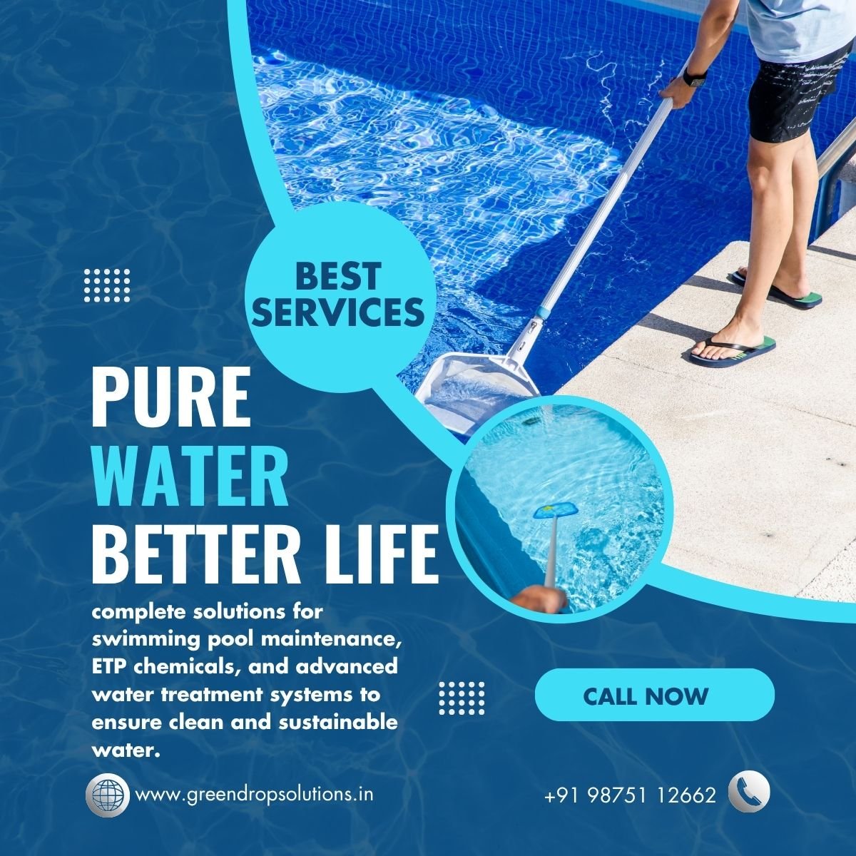 Green Drop Solutions is a trusted name in the field of water treatment and swimming pool solutions, offering high-quality products and services designed to ensure purity, safety, and efficiency. With a strong focus on innovation and sustainability, we provide a complete range of Swimming Pool Chemicals, Swimming Pool Parts, ETP Chemicals, and Water Treatment Solutions tailored to meet diverse industrial and residential needs.